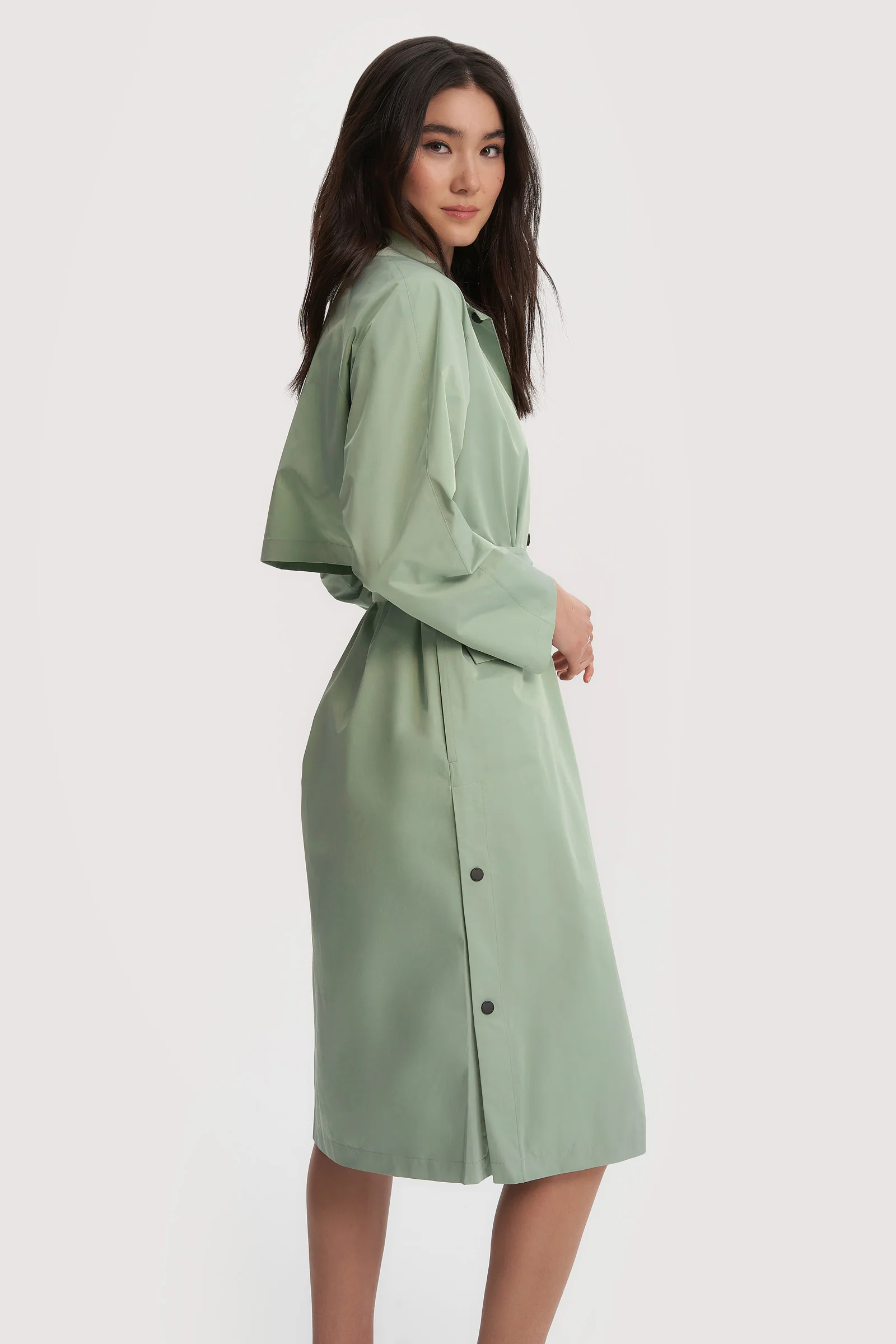 Embrace spring showers with confidence in the Janie wind- and water-resistant raincoat. This chic and functional piece keeps you dry during the most unexpected downpours, ensuring you stay stylish no matter the weather. With its self-belted design, Janie pays homage to classic and timeless rainwear styles while adding a contemporary twist.